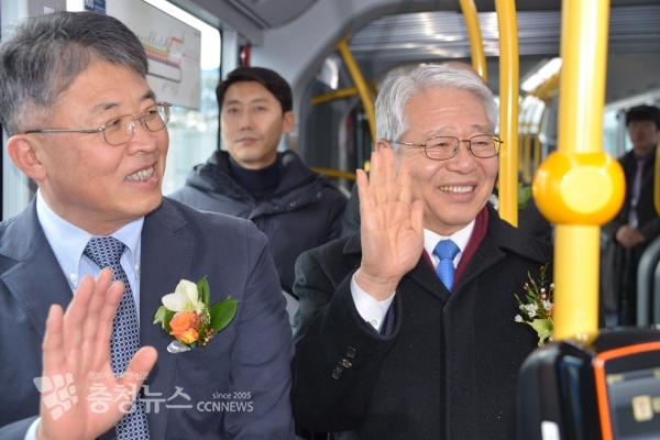 특히, “전기굴절버스는 승차정원이 84명이 되어서 버스 2대가 함께 움직이는 그런 효과가 있기 때문에 전기 굴절버스가 세종시 BRT 도로에 운행 하게 됨으로써 지하철과 마찬가지로 정시성 과 대용량 수송 갖춘 운행체계를 세종시가 갖추게 됐다”고 의미를 부여했다.