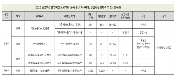 금성백조, 2020년 "약 3,700세대 공급예정"
