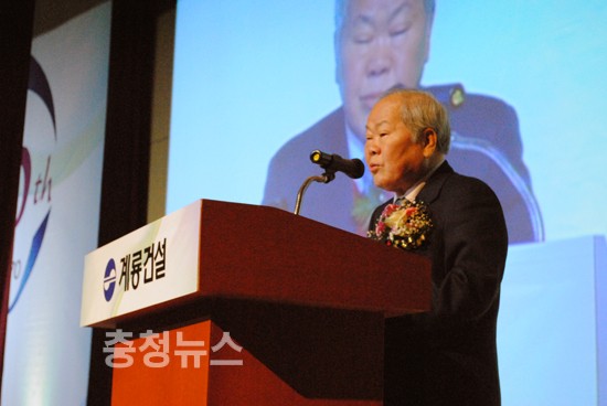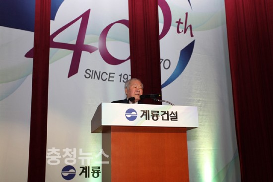 이인구 계룡건설 명예회장이 창립40주년 기념식에서 '2020년 수주 10조원, 업계 10위 도약'을 달성하겠다는 당찬 포부를 밝혔다.