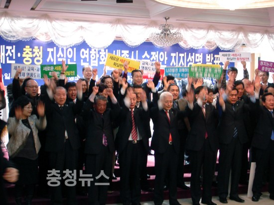 세종시 수정안 대전· 충청 지식인연합회 지지선언이 31일(일)오후 4시 대전 계룡스파텔 1층 (무궁화홀)에서 더 이상의 소모적인 논쟁을 종식시켜야 한다는 입장을 밝혔다