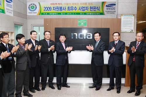 대전시가 전국 최초 ’자원봉사 우수기업’ 으로 ‘삼성SDS’ 을 선정, 1일 정부통합전산센터에서 세 번째 자원봉사 우수기업 현판식을 개최했다.