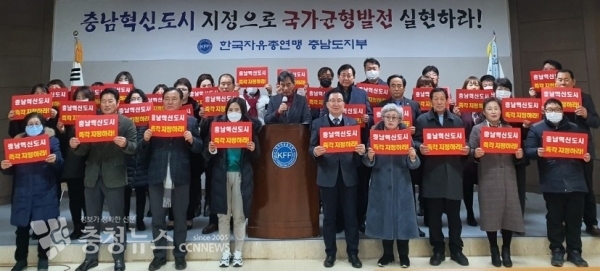 지난 6일 충남도지부 고문· 자문· 운영위원 및 시․군 지회 간부 등 50여명이 ‘충남 혁신도시지정 국가균형발전특별법 개정안’ 통과를 촉구하는 성명을 발표했다.