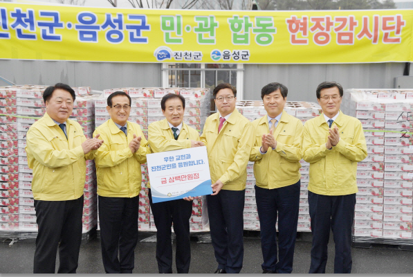 이날, 전국시장군수구청장협의회 대표회장 염태영 수원시장을 비롯해 상임부회장 황명선 논산시장, 충북협의회장 한범덕 청주시장과 군수대표 홍성열 증평군수는 진천과 음성을 위문하고, 우한교민과 의료진, 지역민을 격려하기 위한 ‘지역이 품다’ 캠페인을 전개했다.