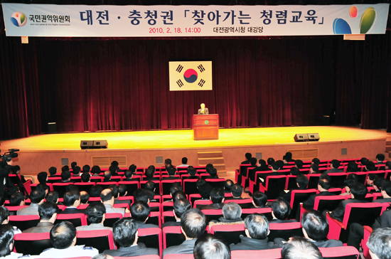 한편, 권익위는 반부패 및 청렴의식 고취를 위해 전국을 5대 권역으로 나눠 ‘찾아가는 청렴교육’을 실시하고 있다.