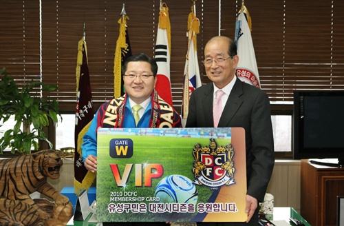 진 청장은 22일 오전 구청 집무실에서 대전시티즌 김광식 사장을 접견하고 대전시티즌 2010 연간회원 가입식을 가졌다.