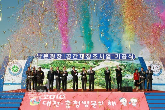 이어서 같은날 오후 엑스포 과학공원에서는 공간 재창조 사업의 일환인  남문광장 기공식도 있었다.