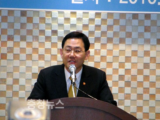 주호영 특임장관은 정부의 세종시 수정 추진과 관련, 24일 “세종시는 교육·과학 메카로 부상해 지역 발전에도 커다란 도움이 될 것”이라고 강조했다. 주 특임장관은 이날 오전 충남 천안시 동남구 다가동 천안웨딩코리아에서 충청르네상스21이 개최한 특강에 참석해 “세종시 수정안은 충청이 새롭게 도약할 수 있는 길을 열고 국가 전체의 이익에 도움이 될 것”이라며 이같이 밝혔다.