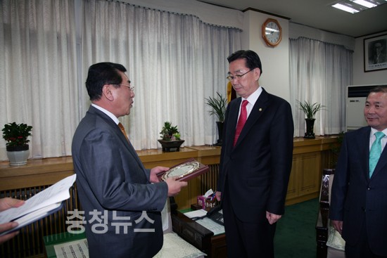 충남도의회의 의원을 대표하여 정종학 부의장이 제 4차 본회의를 마친후 의장 접견실에서 공로패를 전달하였다.