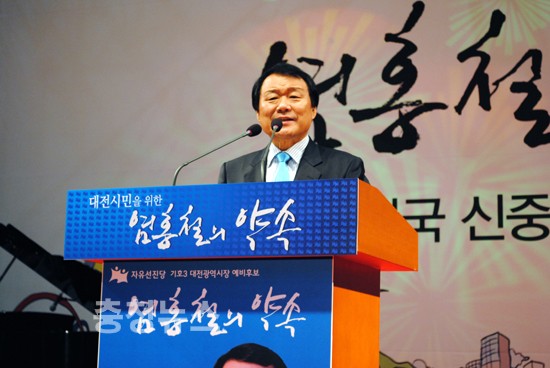 염홍철 대전광역시장 예비후보는 2일 대전무역전시관에서 시민과 지지자 7천여명이 참석한 가운데 정책공약집 출판기념회를 개최하고 신산업창출과 대학 집중육성을 통한 일자리 넘치는 도시, 세계적 축제와 회의, 그리고 첨단과학과 의료관광의 국제도시 조성을 통해 ‘대한민국의 신중심도시 대전’을 기필코 건설해 내겠다고 약속했다.
