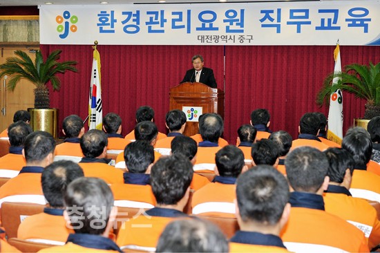 대전 중구는 금일 구청 대회의실에서 "깨끗한 중구 우리가 책임져요" 라는 슬로건아래 환경관리요원의 안전사고 예방과 근무기강 확립을 위한 ‘환경관리요원 직무교육’을 114명을 대상으로 실시했다.