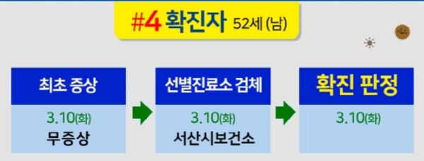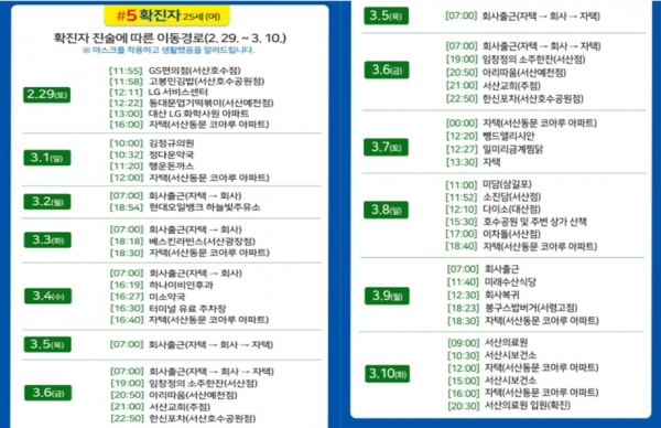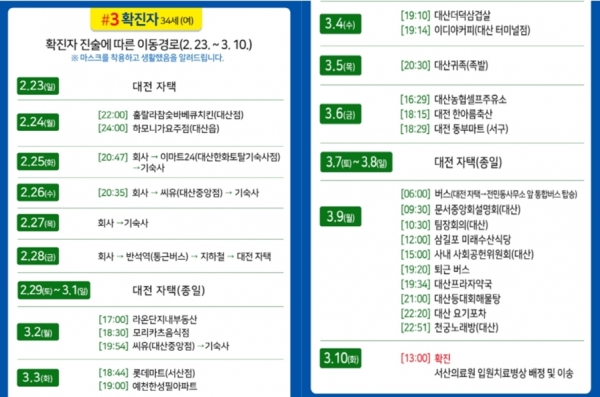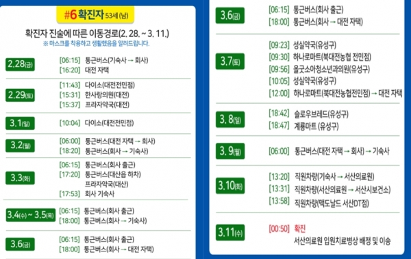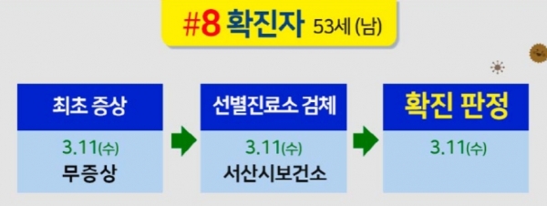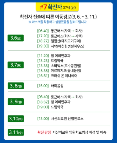 충남 서산시는 11일 코로나19 확진자 3 ~ 8번 이동경로를 밝혔다.