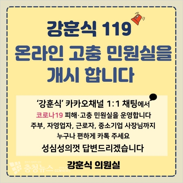 카카오톡채널, 코로나19 정보 전달, ‘강훈식119 온라인 고충 민원실’ 개설
