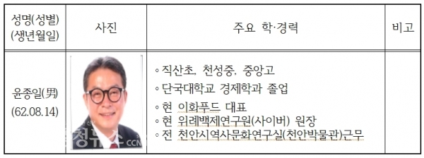 통합당, 천안시 제5선거구 후보자 윤종일 의결