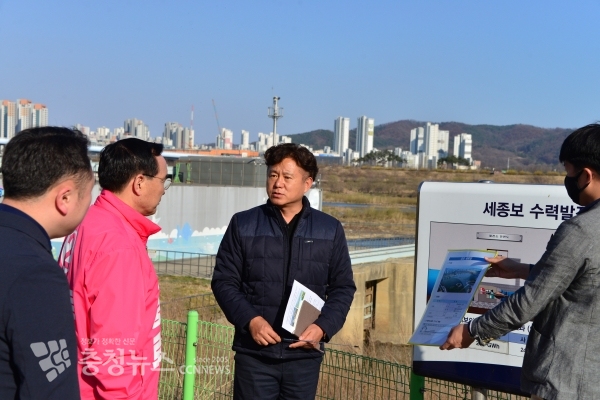 김중로 미래통합당 세종갑 국회의원 예비후보가 22일 세종보를 방문해 “세종시가 행복한 도시가 되려면 세종보와 함께 수변을 개발해야 한다”고 주장했다.