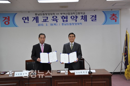 충남도립청양대학(총장 최석충)이 부여산업과학고등학교(교장 김선택)와 우수인재 양성을 위한 연계교육과정을 운영키로 했다.