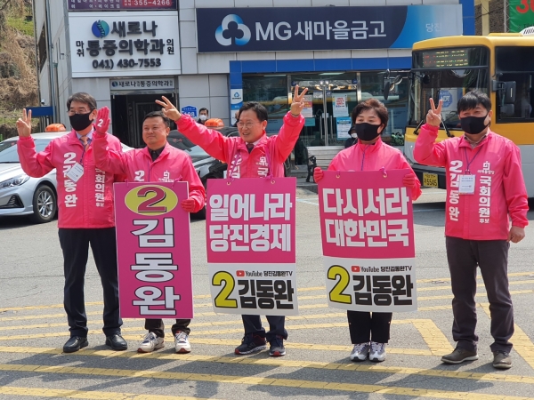 미래통합당 김동완 충남 당진 총선 후보가 2일 탑동사거리에서 공식선거운동의 첫 발을 내딛었다.