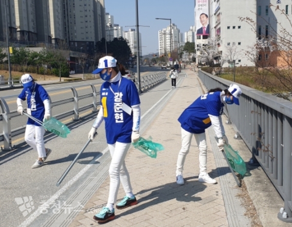 코로나19로 조용한 선거운동 표방…선거운동원 도심정화운동 진행