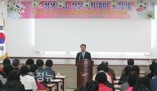 대전 동구(구청장 이장우)는 23일 중앙시장 이벤트홀에서 이장우 구청장과 수강생 170여명이 참석한 가운데 2010년 평생학습 전문아카데미 개강식을 가졌다.