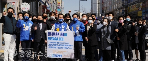 강준현 더불어민주당 세종(을) 국회의원 후보는 6일 테마별 릴레이 정책발표 세 번째로 ‘든든한 힘이 되겠습니다’ 라는 주제로 아름동 상가일원에서 소상공인‧자영업자 살리기 정책을 발표했다.