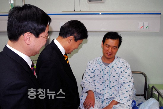 한편 기자회견이 끝난후 박범계 시당위원장과 함께 선병렬 후보가 입원해 있는 성남동 한국병원으로 달려가 위문했다.