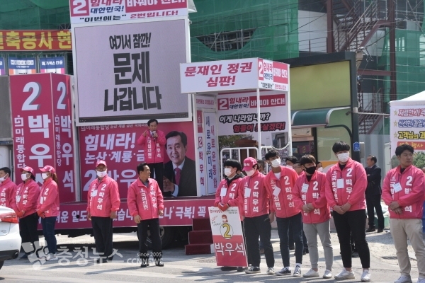 또 그는 박우석 후보를 향해 “한사람이 의지를 가지고 30년 세월동안 논산지역 발전과 나라발전을 위해 일하겠다는 도전 의지를 높이 사달라. 보통사람은 못한다. 논산에 현재 여러 가지 현안을 집념으로 살아온 박우석 후보에게 기회를 달라. 이완구가 보증한다”며 연설을 마쳤다.