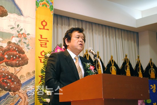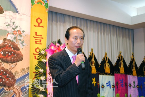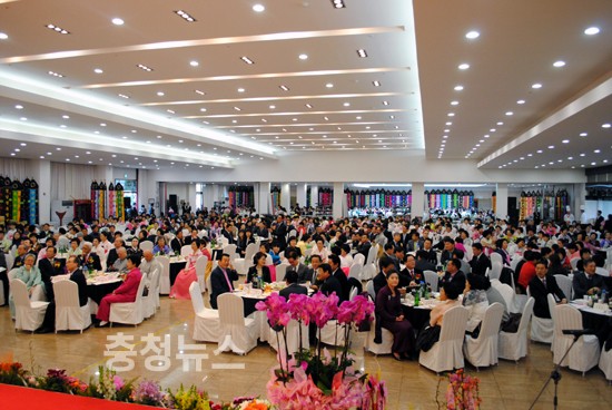 박성효 시장은 축사에서 오늘은 좋은 날 오늘은 기쁜 날이라는 현수막 글씨를 인용 축하드린다고 말했다.