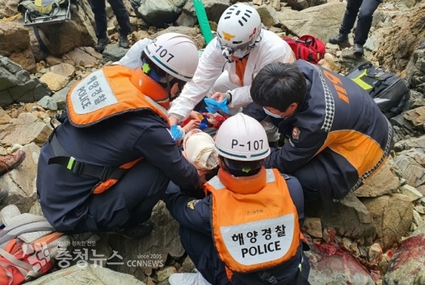 현장에 있던 친구 이 씨의 119 긴급신고를 받고 현장에 출동한 태안해경과 119소방구조대는 다친 박 씨를 응급조치하고, 민간구조선, 경비함정 및 119소방헬기로 연계해 천안 단국대병원에 긴급후송했다.