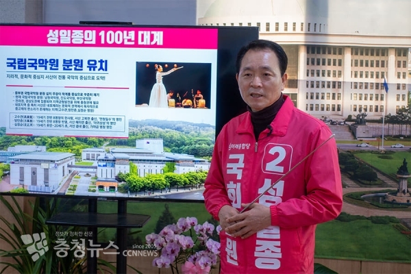 성일종 국회의원 후보(미래통합당, 서산시·태안군)는 12일 “국립국악원 분원을 서산에 유치하겠다”는 공약을 발표했다.