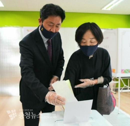 15일 오전 도담동 제7투표소(연세초등학교) 찾아 부부와 함께 투표
