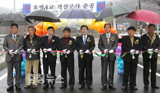 구는 효평4교 개량공사에 토지보상 2천만원, 도로개설 및 교량개량 5억 3천만원 등 총 5억 5천만원의 사업비를 투입, 지난해 9월 공사를 시작해 이날 준공한 효평4교 개량공사는 연장 85m, 폭 8m 도로포장 및 연장 20m, 폭 8m 교량 신설과 그에 맞는 세련된 시내버스 승강장 개량 등이 시행되었다.