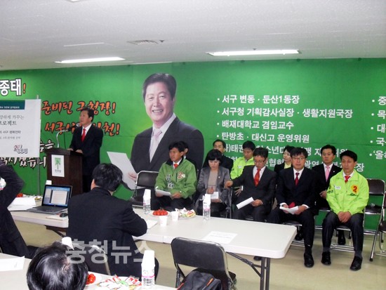 장종태 후보는 4월1일 오후 2시부터 둔산동 선거사무실에서 서구지역 시__구 예비후보들과 지지자들이 참석한 가운데 공약발표 기자회견을 갖고 본격 정책선거에 나섰다.