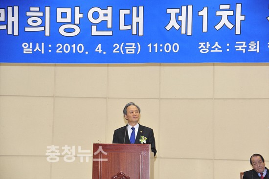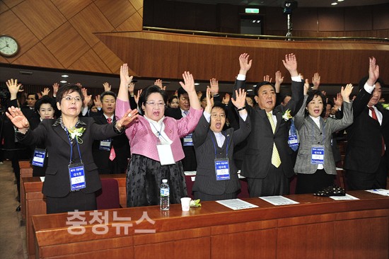 재적 대의원 128명 중 91명이 출석하였고, 출석 대의원 전원 만장일치의 찬성으로 미래희망연대와 한나라당과의 합당 안건이 의결처리 되었음을 밝힌다.