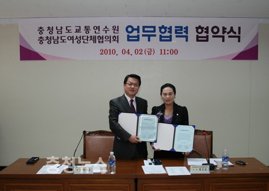 충남교통연수원(원장 박영조)과 충남여성단체협의회(회장 맹은섭)는 2일 교통연수원에서 교통안전선진화 방안으로 업무협약을 체결했다.