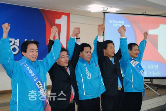 ▲ 대전서구청장 경선후보와 서구당협위원장들