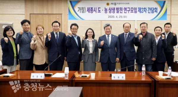 세종특별자치시의회(의장 서금택) ‘도․농 상생발전 연구모임’(대표의원 차성호)은 29일 간담회를 개최하고 연구모임 명칭 확정과 올해 추진 연구과제에 대해 심도 있게 논의했다.