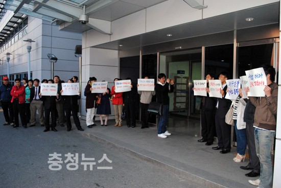 ▲ 선진당 공천심사위원회 심사 결과 발표를 반대하는 집회가 열렸다