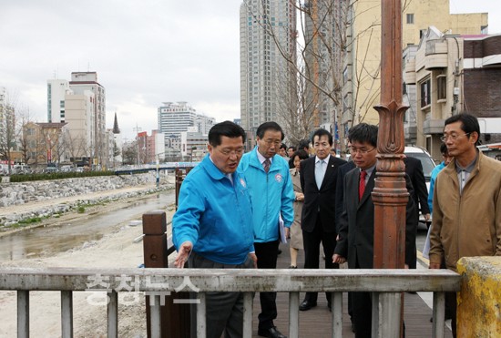 이날 장대교 인근 복원현장에서 윤영구(62세) 통장을 비롯한 인근주민들과의 의견을 직접 청취하는 자리에서 “장대교의 기존 난간과 새로 설치되는 천변 테라스와의 연결이 원할하지 못하다.”고 지적하고 “걸림돌로 작용하고 있는 장대교 인접 가로등을 이전하는 방안에 대해 심도있게 검토하라.”고 지시했다.