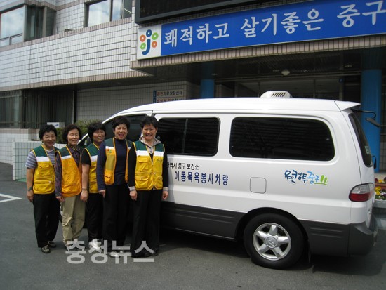 이동목욕서비스는 중구보건소 전담자원봉사자로 구성되어 현재 20명이 주2회씩 어르신들을 직접 방문해 목욕보조활동과 함께 말동무, 방청소 등을 전개하며 안부도 살피고 있다.