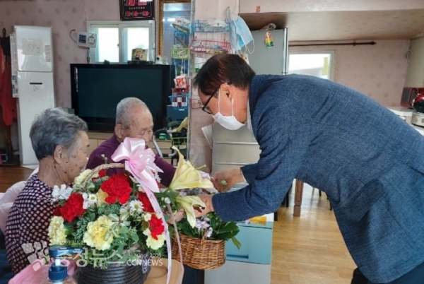 노인맞춤돌봄서비스 대상자 1,350명 어르신 자택 방문 안부와 사랑의 카네이션 꽃 달아드리기 행사