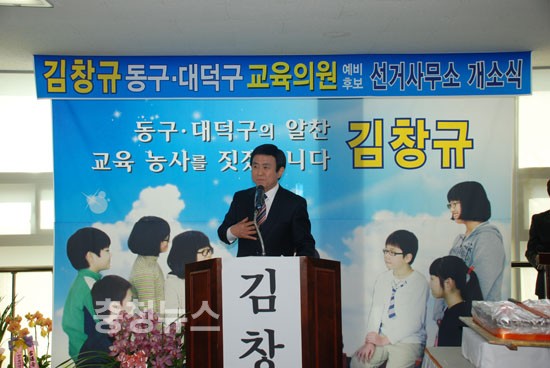 김창규 동구대덕구 교육의원 예비후보가 13일 오전 중리동 선거사무소에서 개소식을 갖고 본격적인 선거운동에 돌입했다.