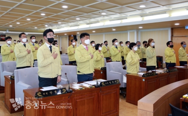 제220회 임시회에서 국기에 대한 경례를 하고있는 의원들과 시장