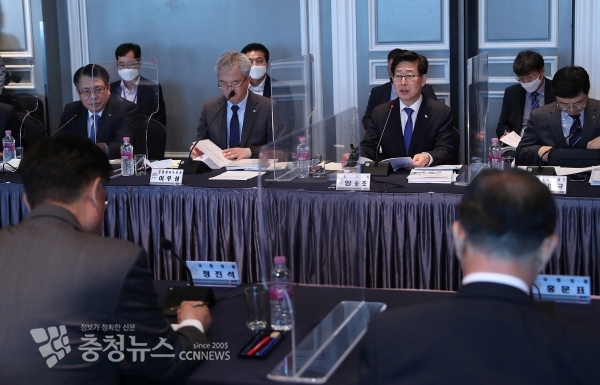 또 △화력발전 지역자원시설세 세율 인상 △금강권역 역사문화관광 플랫폼 구축 △중부권 동서횡단철도 건설 △보령∼대전∼보은 고속도로 건설 △제5차 국도국지도 5개년 계획 반영 △KBS 충남방송국 설립 △휴먼마이크로바이옴 상용화 제품 기술 개발 사업 △중부권 거점 국립종합병원 설립 등도 지역 현안으로 내놓으며 관심과 지원을 당부했다.