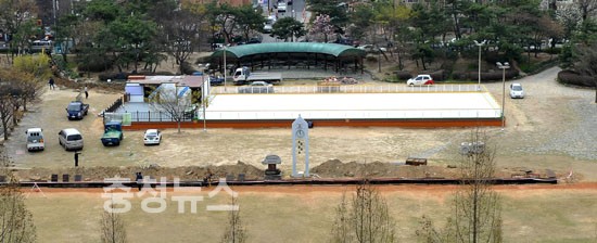 대전 중구는 서대전시민광장에 사계절 인조스케이트장을 조성하고 22일 개장을 앞두고 있다.