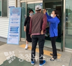 이장협의회, 주민자치위원회, 새마을부녀회 발열체크 봉사활동