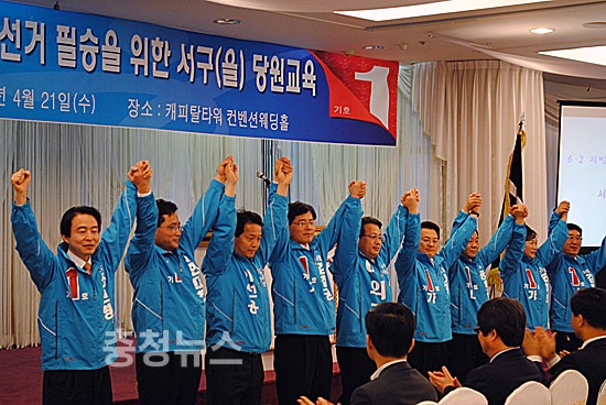 한나라당 대전 서구을 당원교육이 21일 둔산동 캐피탈 컨밴션 센터에서 당원 500여명이 참석한 가운데 오는 6,2지방선거 필승을 위한 당원 교육을 실시했다.