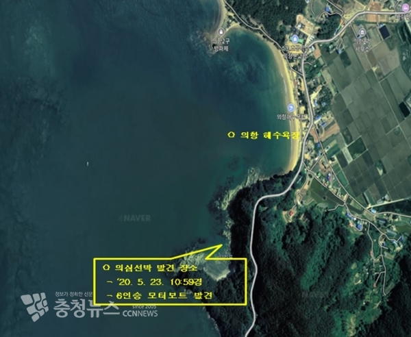 확보된 21일자 방범용 CCTV 영상에는 소형선박(미상) 주변에 6명의 사람의 모습과 인근 마을도로를 지나가는 사람의 모습이 각각 촬영되었다.