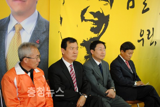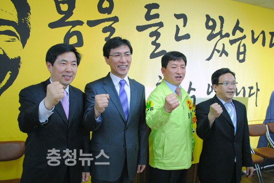 ▲ 동구 제2선거구 민주당 송석범 후보와 안희정 충남지사후보