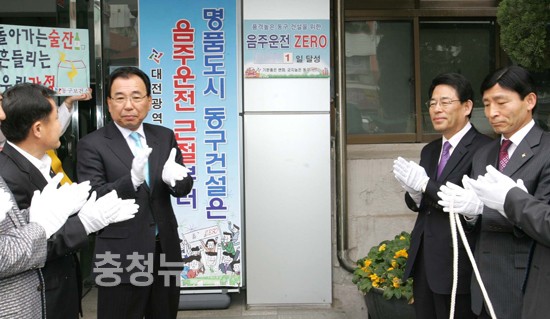 대전 동구는 26일 200여 공직자가 참가한 가운데 구청 현관에서 음주운전 제로화 달성 현판식을 갖고 전 직원이 음주운전 근절 사회분위기 조성에 앞장설 것을 다짐했다.