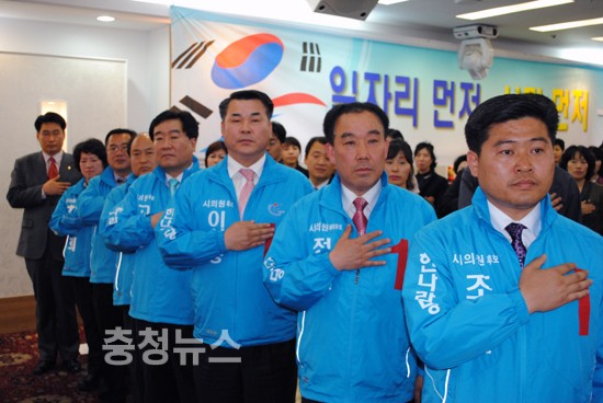 이어 이번 천안함 사태나 북한의 남한재산 몰수 등 총성 없는 전쟁 중에 치러지는 이번 6.2 지방선거에서는 국론 분열도 없애고 우리 영토를 지킬 수 있는 유일한 길은 집권여당인 우리 한나라당의 승리뿐이라고 강조했다