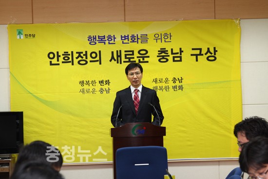 더불어 한나라당 도지사 후보로서 세종시 수정안 당론을 따르겠다고 했는데 거기에 대해서 명확히 밝힐것 을 요구하자 “도정을 맡겠다고 하는 도지사 후보로서는 수정안에 동의하면 안된다.”또한 “ 도민의 여망을 짓밟는 일이고 도정 발전에 부합하지 않는 일이다.”라고 밝히며 “세종시 보다 더 큰것을 주겠다는 대통령과 총리의 말은 거짓말이다. 세종시보다 더 큰 것은 없다.”라며 세종시는 반드시 지켜야 한다고 밝혀 앞으로 안 후보의 행보에 귀추가 주목된다.